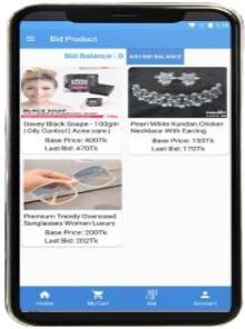 Intheproposedwork,theusercanbuyproductsdirectly fromtheonlineshopwiththehelpofthisappandparticipate in the bid for certain products. For this purpose, the user must first register and fill in the required credentials like username,mobilenumber,e-mailid,etc.Oncethedetailsare filledtheycanaccesstheappwherealltheproductswillbe displayed on the mobile screen. If a buyer wants to participateinthebid,thenhehastoapplyforvirtualcoinsto theshopadmin.Afterverifyingeverything,acertainamount ofvirtualcoinswillbeaddedtotheuser'saccount.Abuyer cannotbidformorethantheamountofVirtualCoinsinhis account.