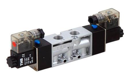 Thedouble-actingpneumaticactuatorstypicallyuse the 5/2 and 5/3 solenoid valves for directional control. Single-coil5/2valvesoftenuseareturnspringorpilotair whenthepoweriscut.Doubleactingsolenoidvalvescanbe made from a variety of materials including nylon, PVC, nickel-platedbrass,andstainlesssteel.AsshowninFig.2.