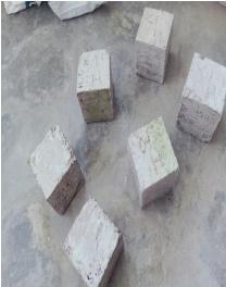 After7-dayofopen-aircuringcompressiontestshowedthe behavior thatthe rate ofhardening isfastfor 7day which increasesstrengthupto18MPa.Butafter28daysofopen-air curing,wherethecompressiontestshowedbehaviorintheir rate of hardening which is slowed after 7 day and compressivestrengthisupto22MPa.