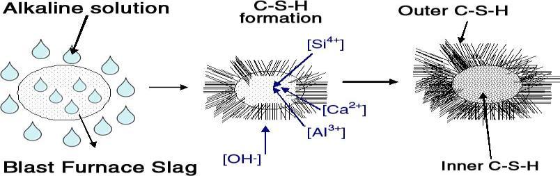 Fig-1.4 Reactionmechanisminanalkali-activatedslag particle