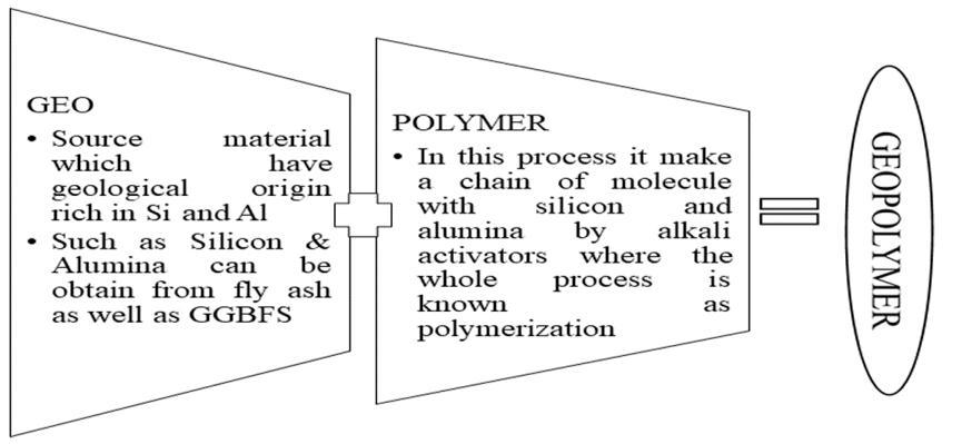 TheJosephDavidovitsusedtheterm"geopolymer"in1978to describepolymerswithaninorganiccomposition.Utilizing wasteproductslikefly-ash(trashfromthermalpower-plants) and(GGBFS)GroundGranulated-Blast-Furnace-Slag(waste fromironmanufacturing)asafullreplacementforcement, geopolymercementiscreatedasshownaboveinFigure1.1 followingthechainofgeo-polymerizationgelbelowinFigure 1.2. Geopolymer cement has a large amount of potential because of its enhanced durability, chemical and thermal resistance to heat, and early age strength. To increase the dependability and durability of geopolymer concrete, researchersareconductingseveralstudiesonitsworkability.