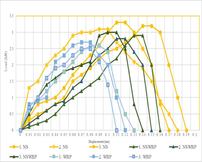 Sample NS (MPa) NSWBP (MPa) WBP (MPa) 1. 1.41 1.27 1.13 2. 1.41 1.23 1.25 3. 1.41 1.32 1.23 Average 1.41 1.27 1.20