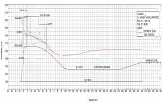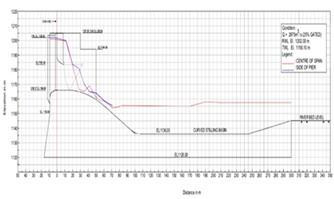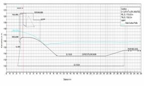Figure 5.2.1 Water Surface Profile Q=2875 m3/s (Gated operation of spillway)