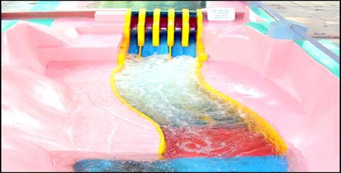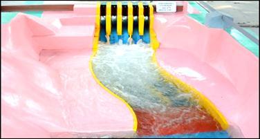 chainage60to70mand70to80m(fromdamaxis)overthe spillwayglacisfor2,875m3/supto15800m3/srespectively. Watersurfaceelevationisbelowthetopofthetrainingwall for 2,875 m3/s in the basin and the same overtops the trainingwallinthebasinfor6,900m3/sandabove.Highly turbulentandvolatileflowconditionswereobservedinthe stillingbasinforthedischargesintherangeof6,900m3/sup to15,800m3/swithwatersurfaceovertoppingthetraining wall substantially in the stilling basin area causing flow returningintothestillingbasinfromthedownstreamarea.