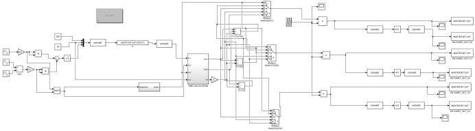 For making simulink model, a svpwm is compared with repeatingsequenceandtheoutputisgiventomaster bit out block. For 6 switches theoutputpins are given as C0 to C5 and the output of pulse is taken from digital I/O connector from dspace connector panel. Figure 24 shows the simulinkMasterbitoutblocks.Theswitching pulseofS1andS4(firstleg),S3andS6(ofsecondleg),S5 andS2(ofthirdleg)isshowninFigure.SwitchS1,S4,S3, S6,S5andS2hasafrequencyof3kHz.