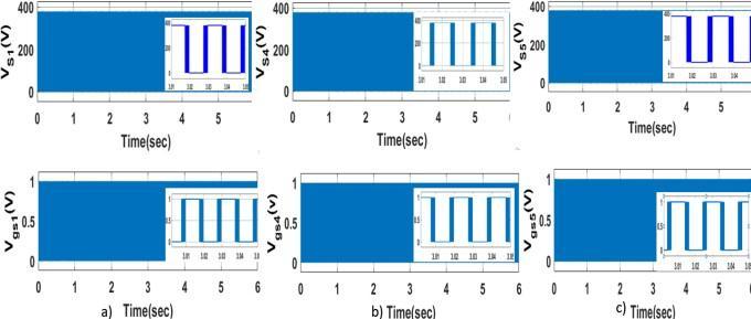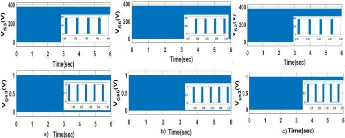 Figure18:a)VoltageacrossswitchS3andGatepulse toS3b)VoltageacrossswitchS6andGatepulsetoS6 c)VoltageacrossswitchS2 andGatepulsetoS2