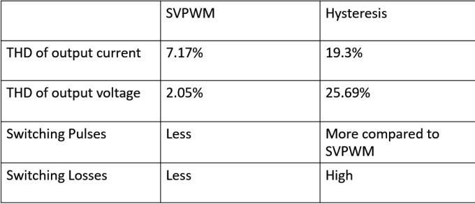 Table4 -Comparison between SVPWM and Hysteresis