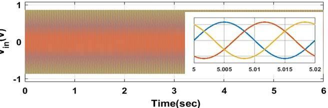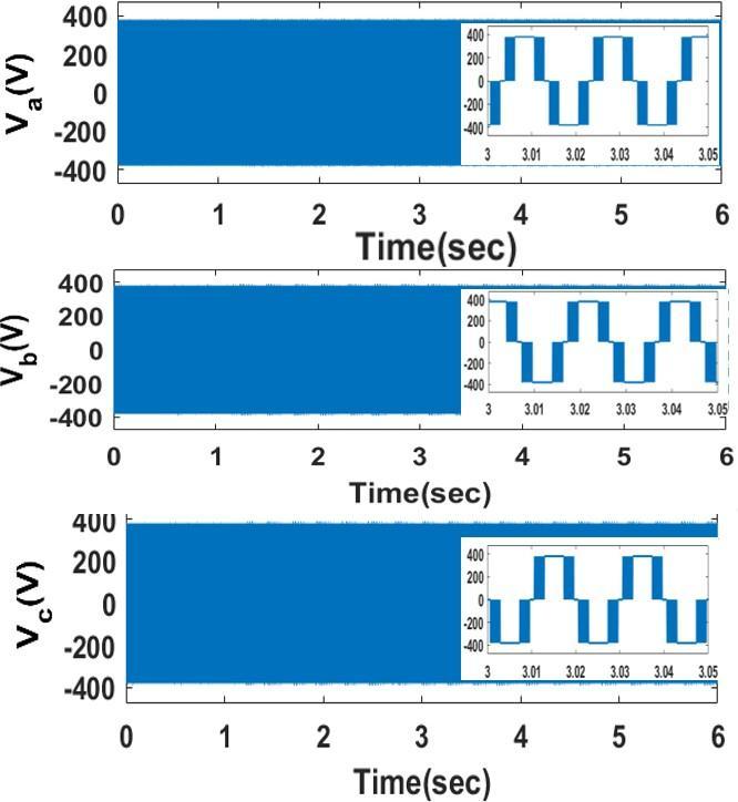 ThesimulationresultsoftheSpaceVectorBasedHysteresis Controller for VSI Fed IM Drive are shown in the following figures. Three phase Input voltage is shown in figure 7 to obtain SVPWM. Simulation is carried out by using 1HP motorandparametersarecalculatedbyusingNo-loadand blockedrotortest.