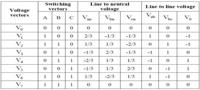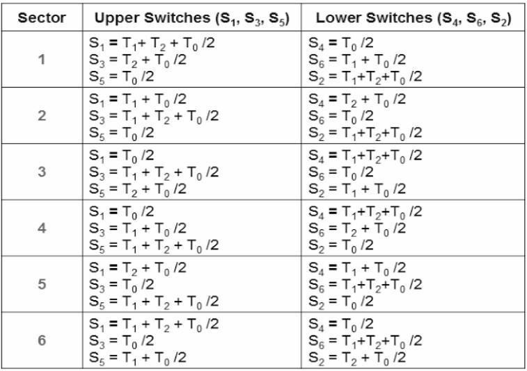 To calculate the time of application of different vectors, consider Figure3, depicting the position of differently availablespacevectorsandthereferencevectorinthefirst sector.Table1showstheswitchingstatescorrepondingto