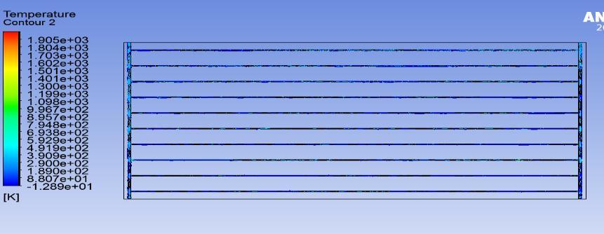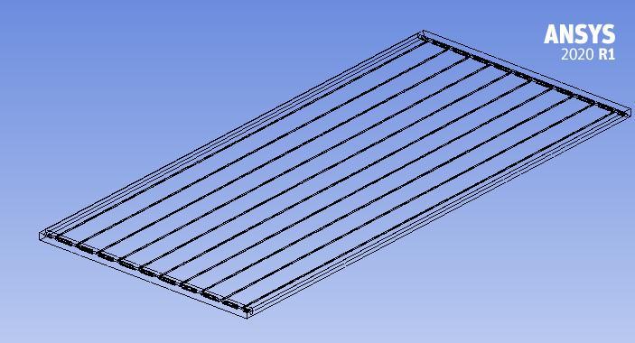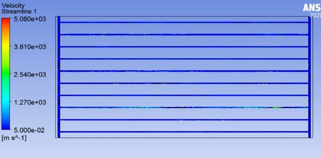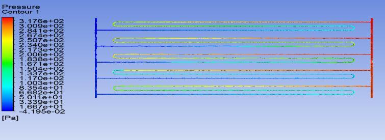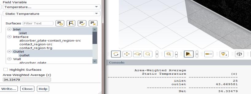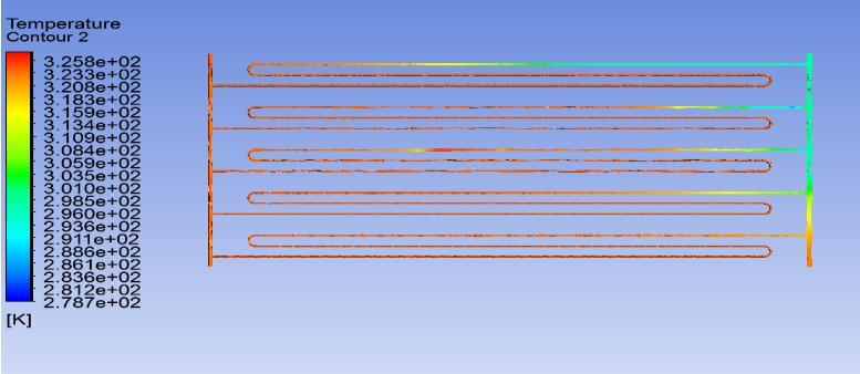 In this iteration parallel tube are considered and radiation is appliedontopoftheglass.Thewaterflowinginsidethetubehas a temperatureof 25degree Celsius andatoutlet43.66 degree Celsiushasbeenmeasured.