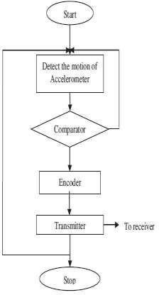 Fig. 5 depicts the flowchart of the transmitter. It first checks the motion of the accelerator upon which will be giventotheencoderforprocessingthissignal.