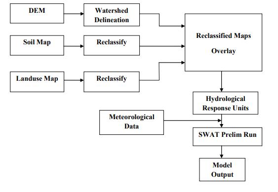Arnold et al., (1995, 1996), Neitsch et al., (2001) SWAT (Soil and Water Assessment Tool) model was developed for the watershed. It is physical based model i.e. related with movement of sediment and water, growth of crop and nutrient cycling. It predicts runoff, sediment yield, chemical yield, impingement of managing land on water and vegetal land over varying soils. It is continuous time simulatedmodel.