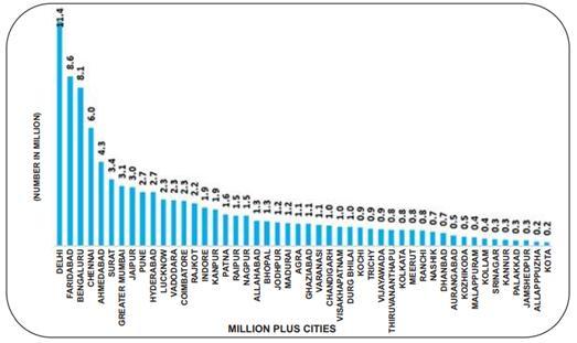 Fig -1: TotalRegisteredMotorVehiclesinmillionPlus Cities ason31stMarch,2019(inmillion)