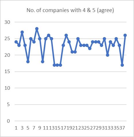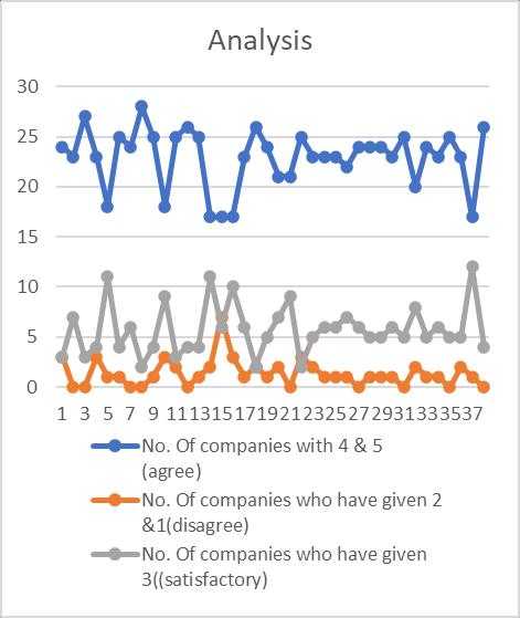 Question No No.Ofcompanies with4&5(agree) No.Ofcompanieswho havegiven2&1(disagree) No.Ofcompanieswho havegiven3((satisfactory) 1 24 3 3 2 23 0 7 3 27 0 3 4 23 3 4 5 18 1 11 6 25 1 4 7 24 0 6 8 28 0 2 9 25 1 4 10 18 3 9 11 25 2 3 12 26 0 4 13 25 1 4 14 17 2 11 15 17 7 6 16 17 3 10 17 23 1 6 18 26 2 2 19 24 1 5 20 21 2 7 21 21 0 9 22 25 3 2 23 23 2 5 24 23 1 6 25 23 1 6 26 22 1 7 27 24 0 6 28 24 1 5 29 24 1 5 30 23 1 6 31 25 0 5 32 20 2 8 33 24 1 5 34 23 1 6 35 25 0 5 36 23 2 5 37 17 1 12 38 26 0 4