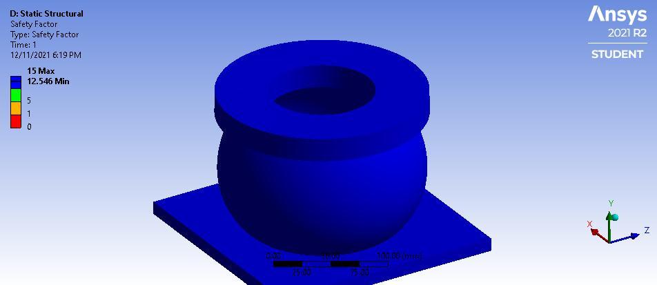 Figure5.23EquivalentstressusingP100/6061AlMMCThe safetyfactorplotisgeneratedusingAlMMCmaterial.The safetyfactorishighwithuseofP100/6061AlMMCmaterial withmagnitudeof12.546.