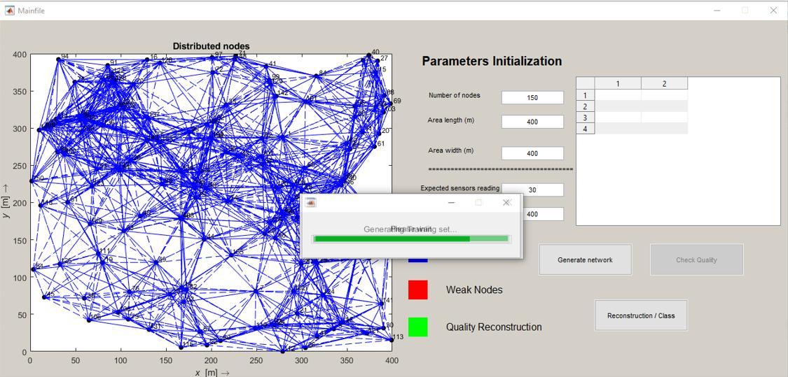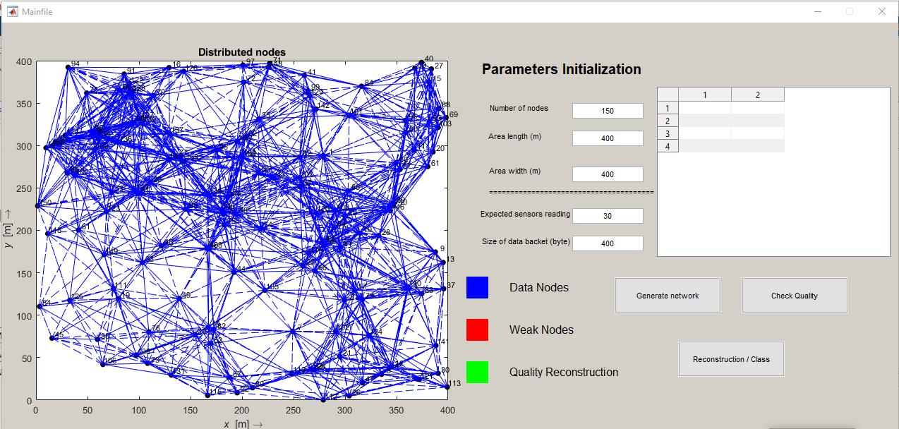 Thefigure7depictstheinitializationofparametersinthisnetwork,whichhas150nodesandalengthandwidthof400m.and sizeofthedatabucket400.