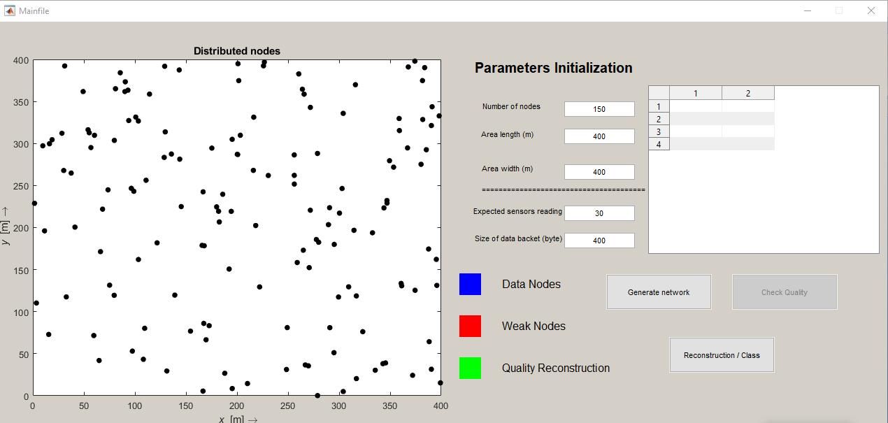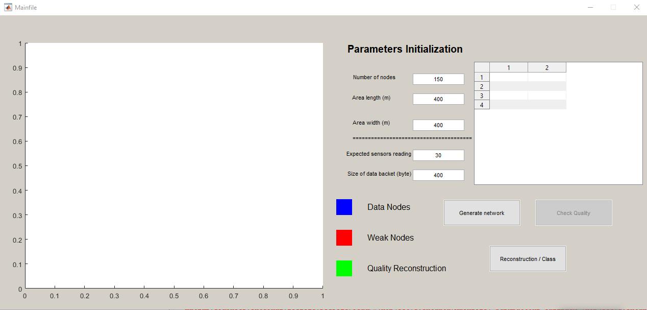 Fig5windowshowingtheparametersinitialization,theinitialparametersgivennumberofnodes,area,widths,packetsrates andexpectedsensorreading.