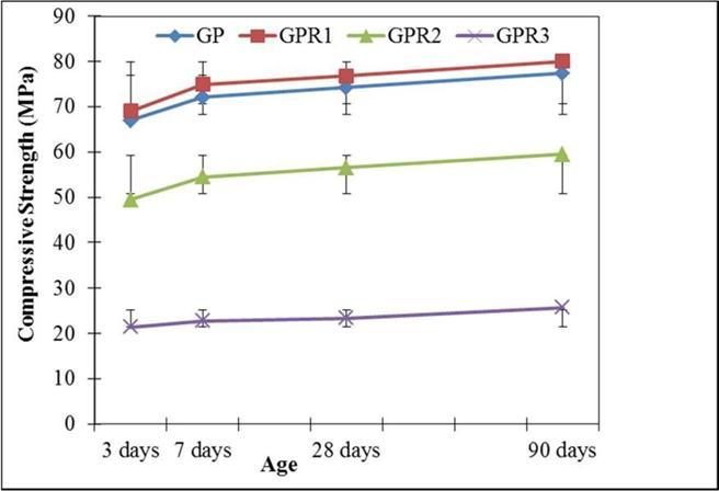 While comparing oven curing at a temperature of 60°C and ambient curing, the strength increase at 28dayswas45%forGPR1andnearlythreetimes forGPR2specimens.