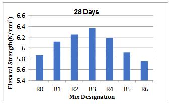 Theflexuralstrengthat28daysishighestforR3which is8.5%morewhencomparedtotheR0.
