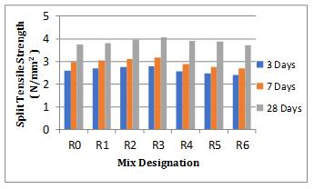The highest split-tensile strength of 4.08 N/mm2 is examinedforR3 whichis9.1%morewhencompared totheR0at28days.