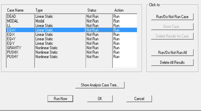 Initially the basic static analysis was made to run in SAP 2000 and then the static nonlinear pushover analysis.