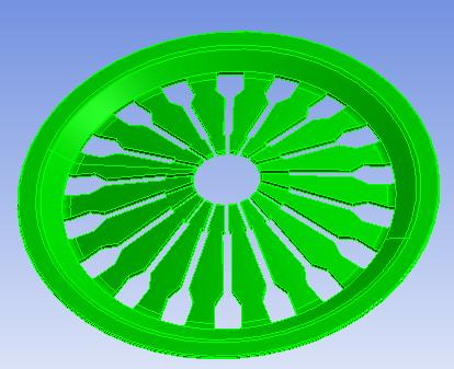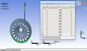 In the current work, a typical diaphragm spring is taken into account for the numerical analysis of force and is first modeled in the CATIA v5r12 simulation programmed before being further examined in ANSYS 14.0. For a good analysis, the top edge of the spring is given the displacement, and at rest all directions for that edge are completely limited.