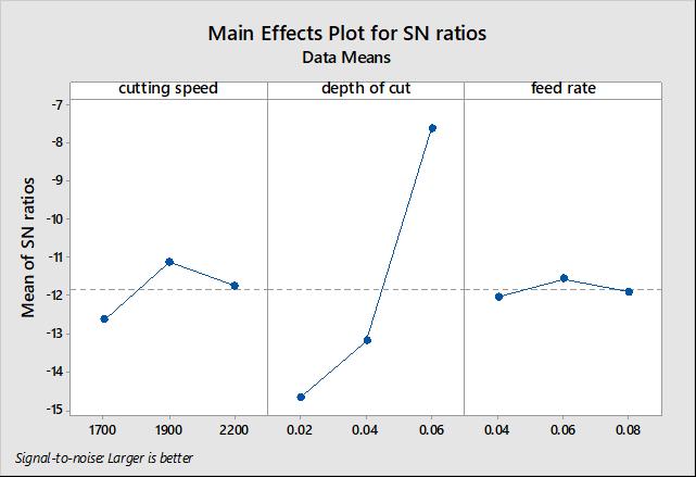 Level CuttingSpeed DOC FeedRate 1 4.568 2.920 4.790 2 5.846 4.711 5.433 3 5.233 8.017 5.425 Delta 1.278 5.097 0.643 Rank 2 1 3