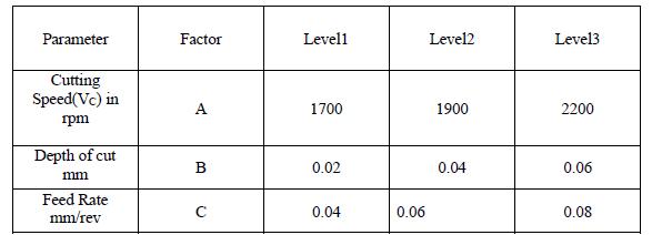 Abstract - The analysis of variance (ANOVA) results for a single optimization corroborate the previous finding by showing that the depth of cut has the greatest influence (92.06%), followed by the cutting speed(4.65%) andfeedrate (0.94%) with the least influence on the MRR values. The calculation of the grey relational grade in equation(7)results in a value of 0.4413, indicating that the ideal collection of input control parameters is A2B3C1. Table 5.9 displays the results of the confirmation experiment for the response parameters. Itshouldbe notedthat the experimentalvaluesof Cutting Speed (VC) in rpm, Depth of Cut mm, and Feed Rate mm/rev are all greatly improved by GRA.
