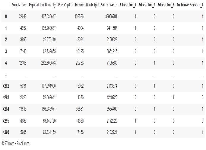 As explained earlier, municipal solid waste is the dependent variable (y), and all other columns are independentvariables.