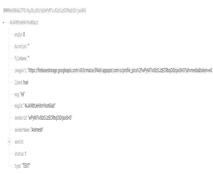 Figure 5: Sample data of a single chat in firebase realtime DB