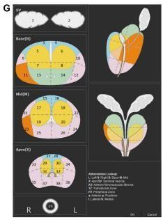 American College of Radiology, ESUR, and AdMeTech foundation worked to upgrade this standard to PIRADS version2, whichamongotherchangesalsopromotestheuseof39-regioncharts(Fig.4G)todefinelesionlocations. Accordingtothe newestPIRADSversion2,DCE-MRIdoesnothelptotheoverallassessmentofsuspicionlevelforlowergrade(PIRADSlevels 1and2)andhighergradelesions(PIRADS4or5).(PIRADS4or5).ApositiveDCE-MRI raisesPIRADSlevel4suspicionfor equivocalormoderate-gradePIRADS3lesions.Hence,themainstreamexpertopinioncurrentlyconsidersdiagnosticquality T2WIandDWI/ADCimagestobethemajorMRIsequencesusedfor suspicion levelassessment of lesions. DCE-MRI is still suggestedtodetecttinyclinicallyimportanttumors.