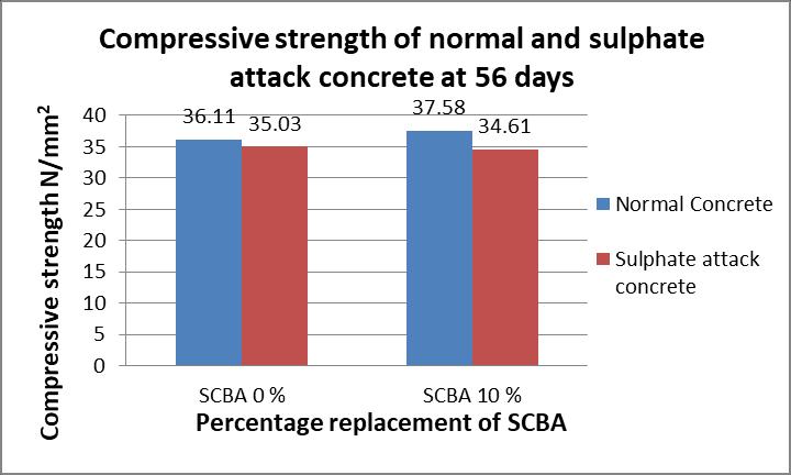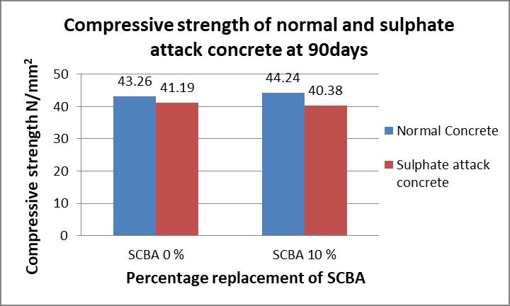 Fromourresearch,compressivestrengthofSCBA0% isreducedduetosodiumsulphateattackat28,56,90daysis 5.75%,2.99%,4.78% respectively compared to normal concreteandcompressivestrengthof SCBA10%isreduced due to sodium sulphate attack at 28,56,90 days is 3.37%,7.90%,8.72% respectively compared to normal concrete.