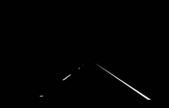 for line in Lines: for x1, y1, x2, y2 in line: cv2.line(blank_image, (x1, y1), (x2, y2), (0, 255, 0), thickness=4)