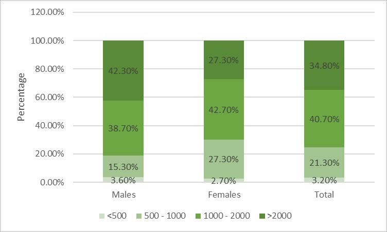 The above study has been carried out to understand the difference in shopping behaviour of men and women. ContrarytothestudydonebyHu,H.andJasper,C.(2004), this study shows that there is difference in terms of expenditurepertriporshoppingfrequencyasinFigure1. MostparticipantsspendmorethanINR1000butlessthan INR2000.HigherpercentageofmenspendmorethanINR 2000pertripwhereashigherpercentagewomenspendless than INR 1000 per trip. However, there was a significant associationof expenditurepertripandgender(χ2=7.665, p=0.053).