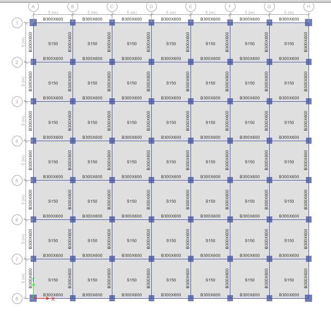 Fig.(3.2) Symmetrical structure plan upto storey 8.