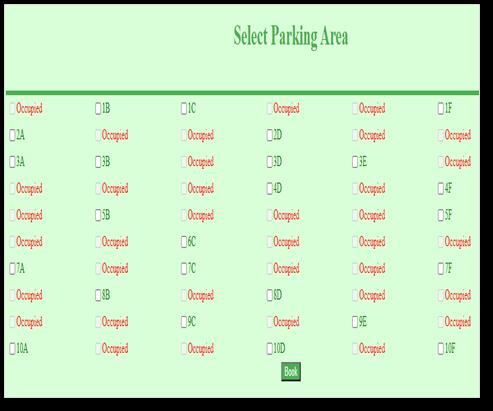 spaceisviewedbyLCDattheentranceoftheparkingarea andonlineparkingsystemthewebpageshowsthebooked slotandemptyslotinthecarparkingarea. 4.1