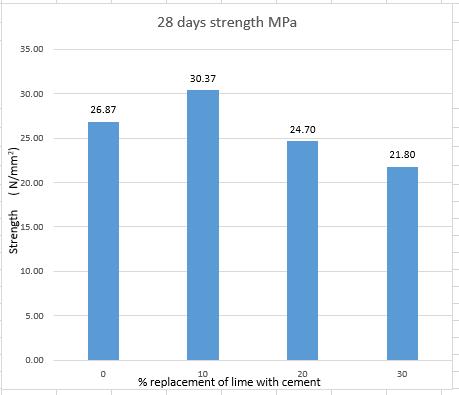 1. The compressive strength of lime concrete cubes increaseduntillimewasaddedto10%byweightof cement. When the amount of lime used exceeds 10%,thecompressivestrengthofthelimeconcrete cubedecreasessignificantly.