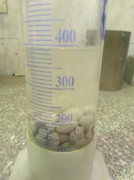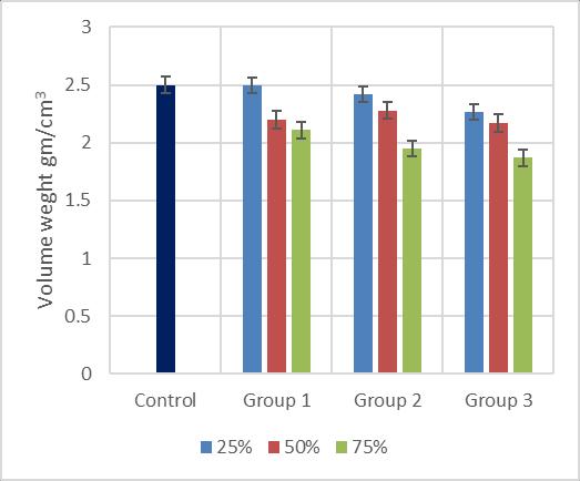 Cubespecimensofsize100x100x100mmwereformed for the volume weight of concrete at various ratios of artificial coarse aggregates. After 24 hours, the specimens were remolded and weighted. Their average value is presented to compute volume weight using the following formulae: Volumeweight=weight(g)/volume(cm3).