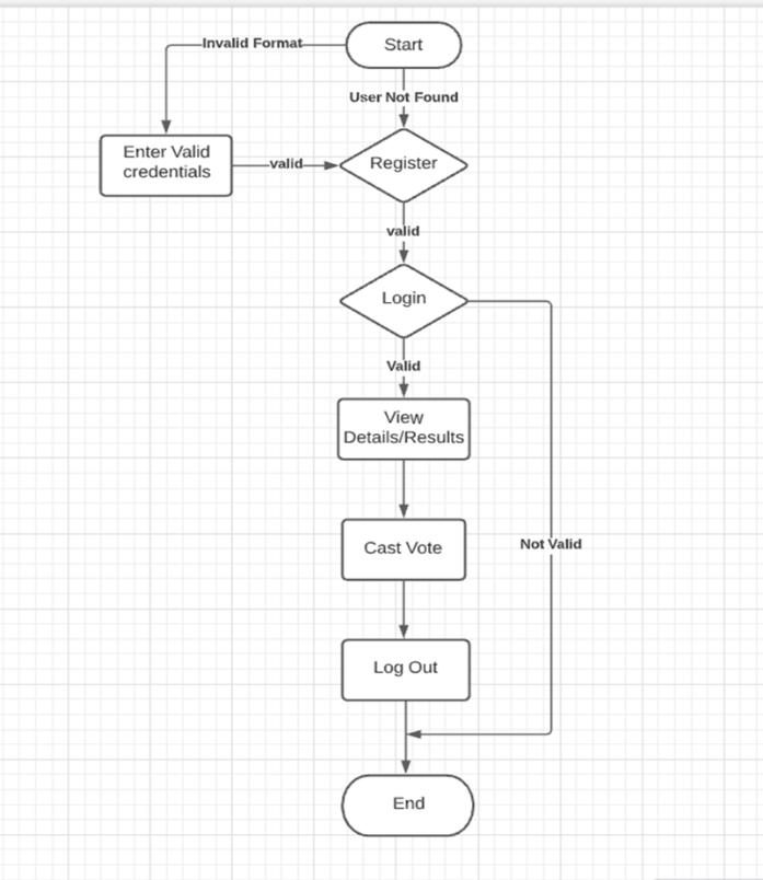 1) The user initially logs in using their username and password,iftheyalreadyhaveanaccount.Ifnot,theymust registerbygivingtheadmintheirfullname,state,voterID, and other information via the portal before being given permissiontocreateapassword.