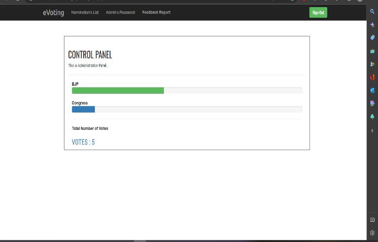 5)Byauthenticatinghimselforherself,theAdmincanview theresultsanddeclaretheelection'soutcome.Apassword change by the administrator is permitted for security reasons.Thisprovidesauser-friendlyandvisuallypleasing display of the votes each contender earned. It details the percentageofvoteseachcandidateobtained.Buttheresults won'tbeknownuntilbeyondtheelection'sdeadline.