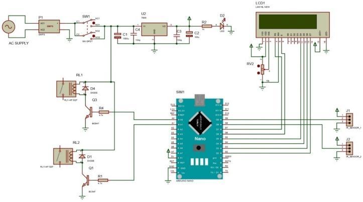 The schematic diagram of the bidirectional visitor counter is given in Figure 1 , where all the components are connectedtoeachothersystematically.