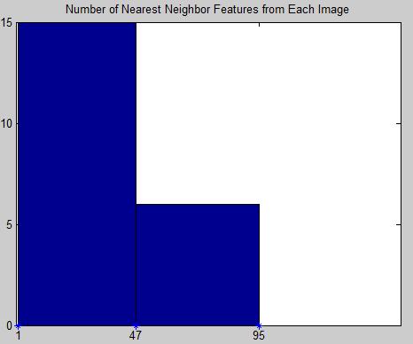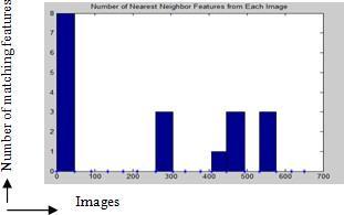Thequeryimage'sstrongestSURFfeaturepointsarefound. Foreveryofthecharacteristicsinthequerypicture,thekNN searchalgorithmisusedtolocatethetwoclosestneighbours in the dataset. Each neighbor's distance is calculated. Thenumberofcharacteristicsthatmatchedfromeachimage inTable2istalliedusingtheMatlabfunctionhistc(which stands for Histogram Count). Each pair of indices in the index intervals below makes up an index interval that is showninFig.4andcorrespondstoapicture.