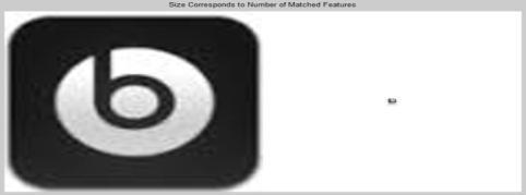 TheBeatslogoisderivedfromtheBeatswebsite,whichis used to contrast the picture collection. The Beats logo is chosenfromthewebsitebydefiningaboundingboxaround the logo in Fig. 8 and treating it as the query image. The queryimage'sfeaturepointsareidentifiedandshowninFig 9 as features. Using histc, Fig. 10 counts the number of characteristicsfromeachpicturethatmatched.Eachpairof indices in the index intervals in Fig. 11 together form an indexintervalthatcorrespondstoonepicture.