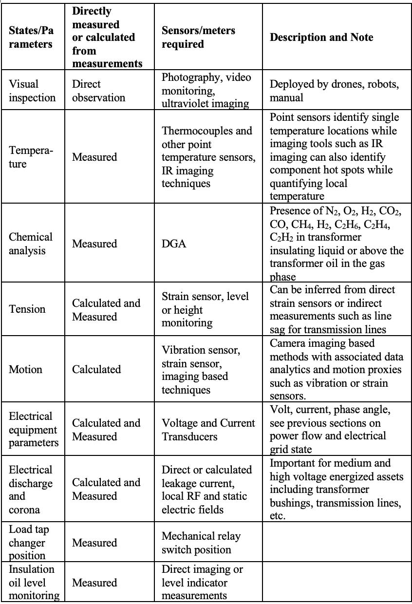 Table1.KeyStatesandParametersRelevantforElectricalTransmissionandDistributionSystemAssetMonitoringandFault Diagnosis.