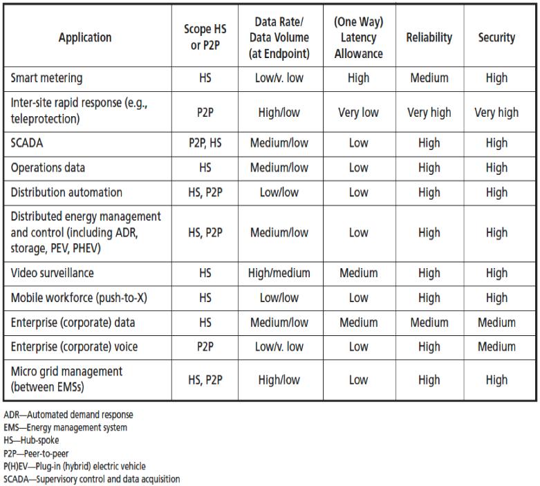 Figure5. Thecommunicationsrequirementsforthelogicalapplicationelementscomprisingthesmartgridarepresented alongwith“recommended”networktopologies.