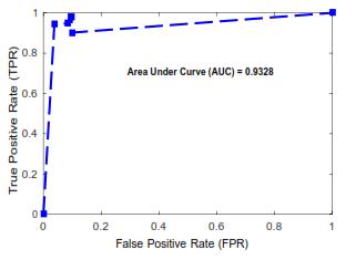 Fig.7.ROCcurveforcategorizationof‘bike-riderwith helmet’vs.‘bike-riderwithout helmet’ in phase-IIdepicting high area underthe curve