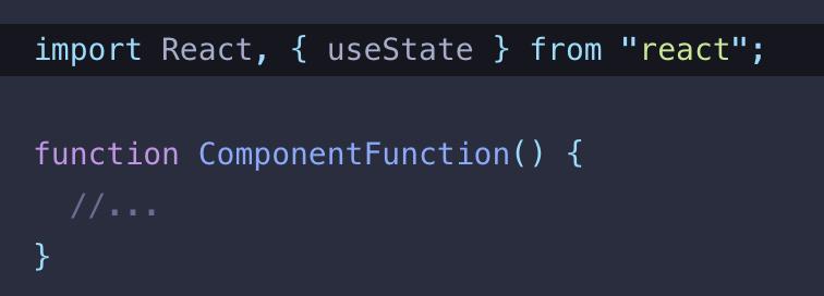 Ourexamplestartsbyaddinganamedimportofthesame name,useState, fromthereactlibrary,asdepictedbelowin Figure 5.