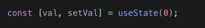 Intheexampleabove, val isthestatevariable,andwecan setthevalueof val usingthesetterfunction setVal