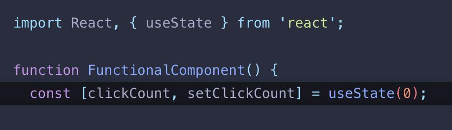During the early React days, we would convert a functional component to a React class component if we neededtoaddstatefullogic.However,wecannowinstead useastatehook.