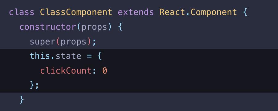 Continuing with our class example, let us initialize clickCount to 0 by setting the value of this.state to {clickCount: 0} intheconstructor,asshownin Figure 6